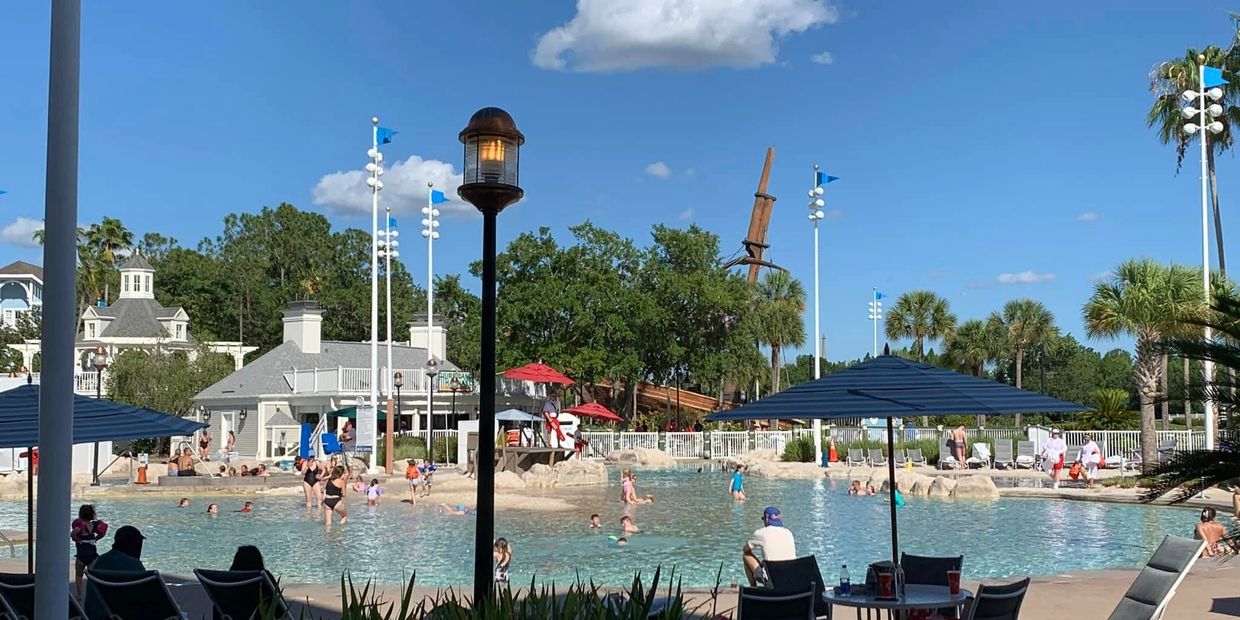 The main feature pool, Stormalong Bay, is three acre water wonderland featuring a sand bottom pool and a lazy river. Explore a life-size shipwreck replica and slide down one of the highet waterslides at Walt Disney World. Shipwreck Pool is the kiddie pool - complete with its own mini waterslide. Stormalong Bay is shared with the Yacht Club's sister resort, The Beach Club Resort. In addition to Stormalong Bay, there are three leisure pools. The resort offers daily activities such as pool parties and games.